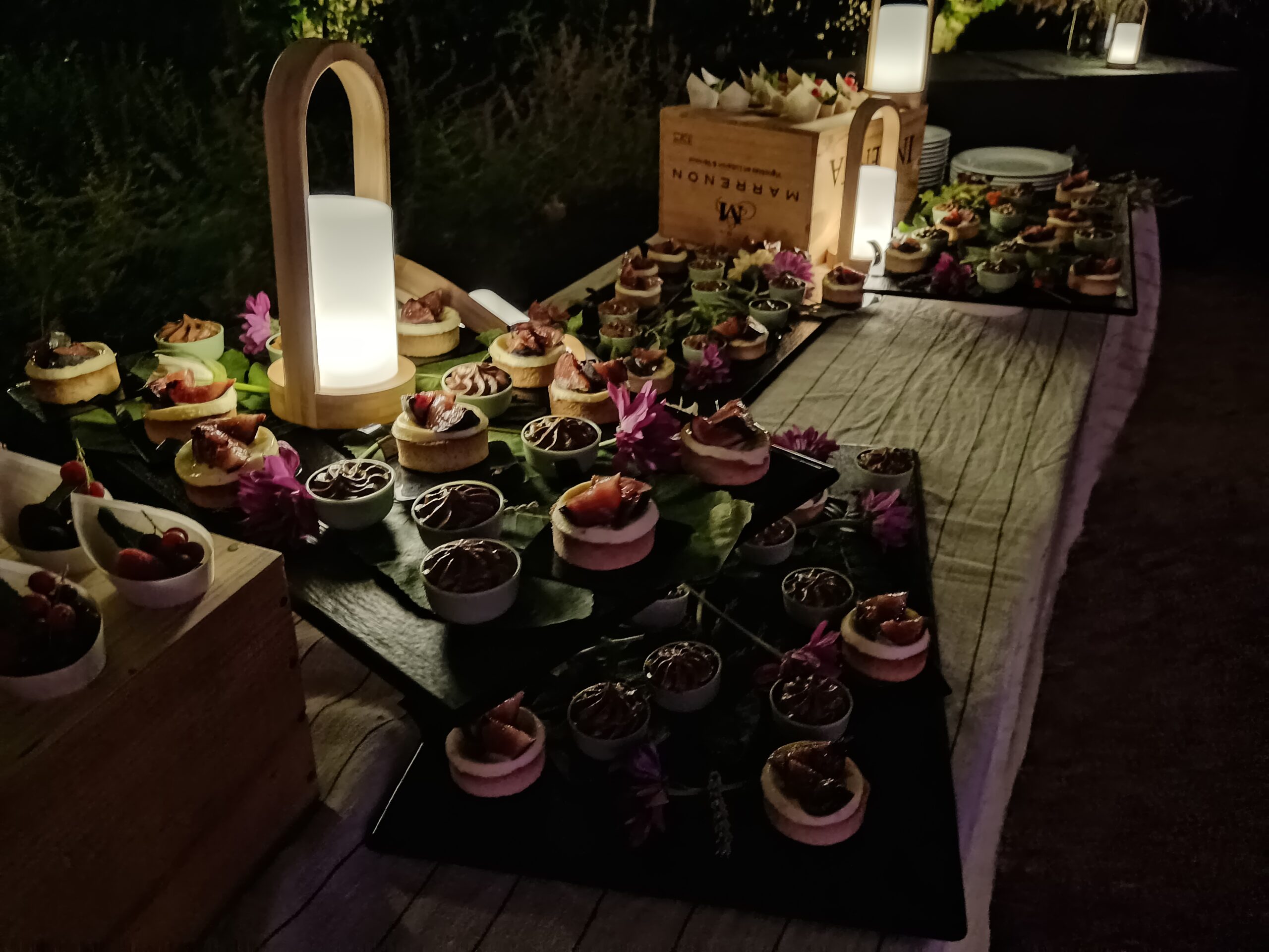 - Buffet dinatoire froid et chaud avec assortiment de dessert individuels ou assortiments de mignardises.